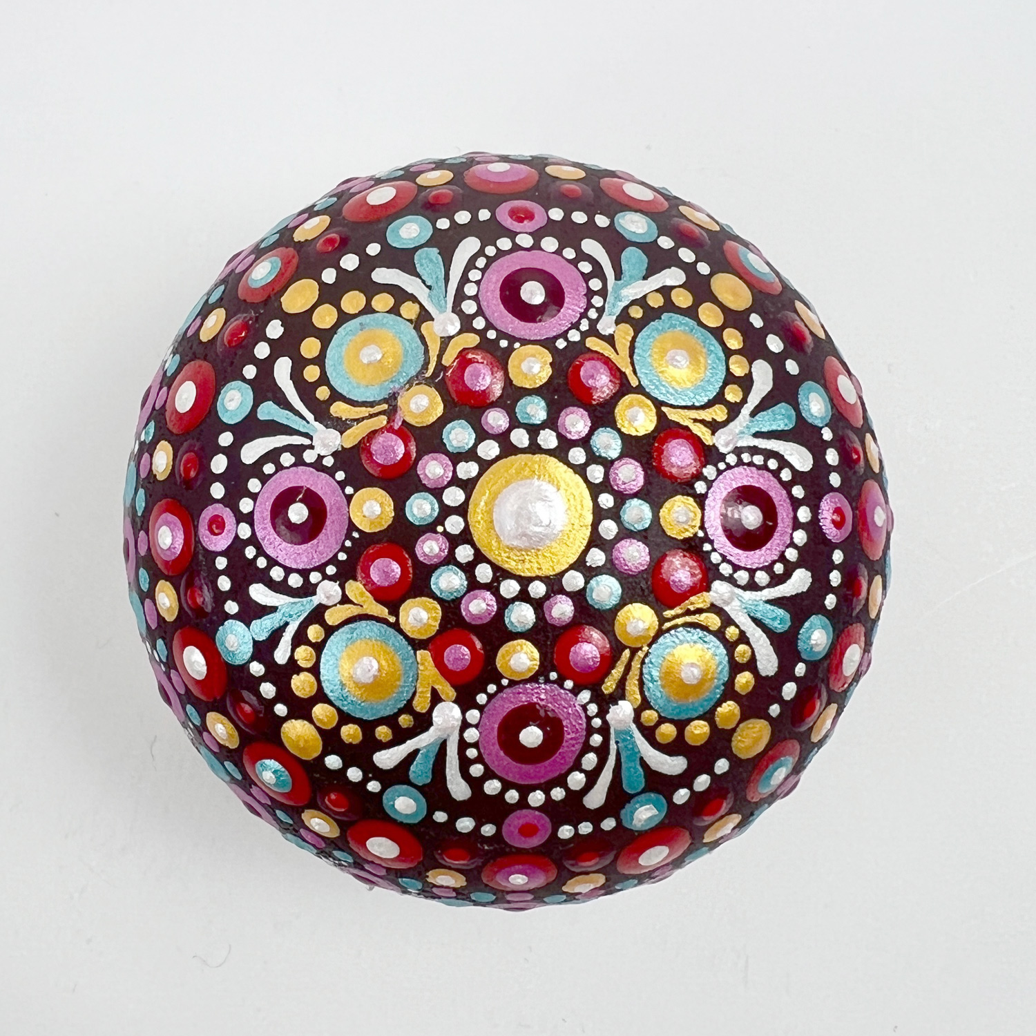 Hand painted with acrylic paint and sealed with varnish. Dots are puffy and satisfyingly touchable : )