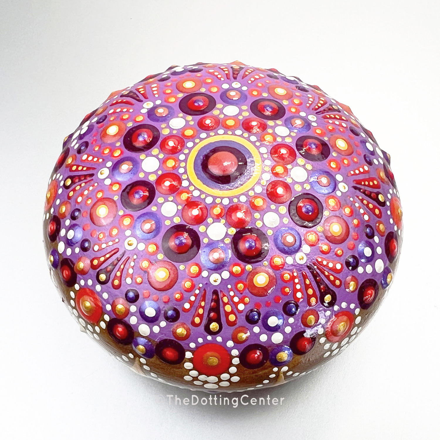 Hand painted dot mandala molded plaster stone.